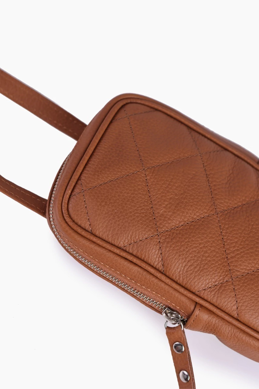 - Mini bag en cuero graneado suela con detalle de matelasé en el frente.
