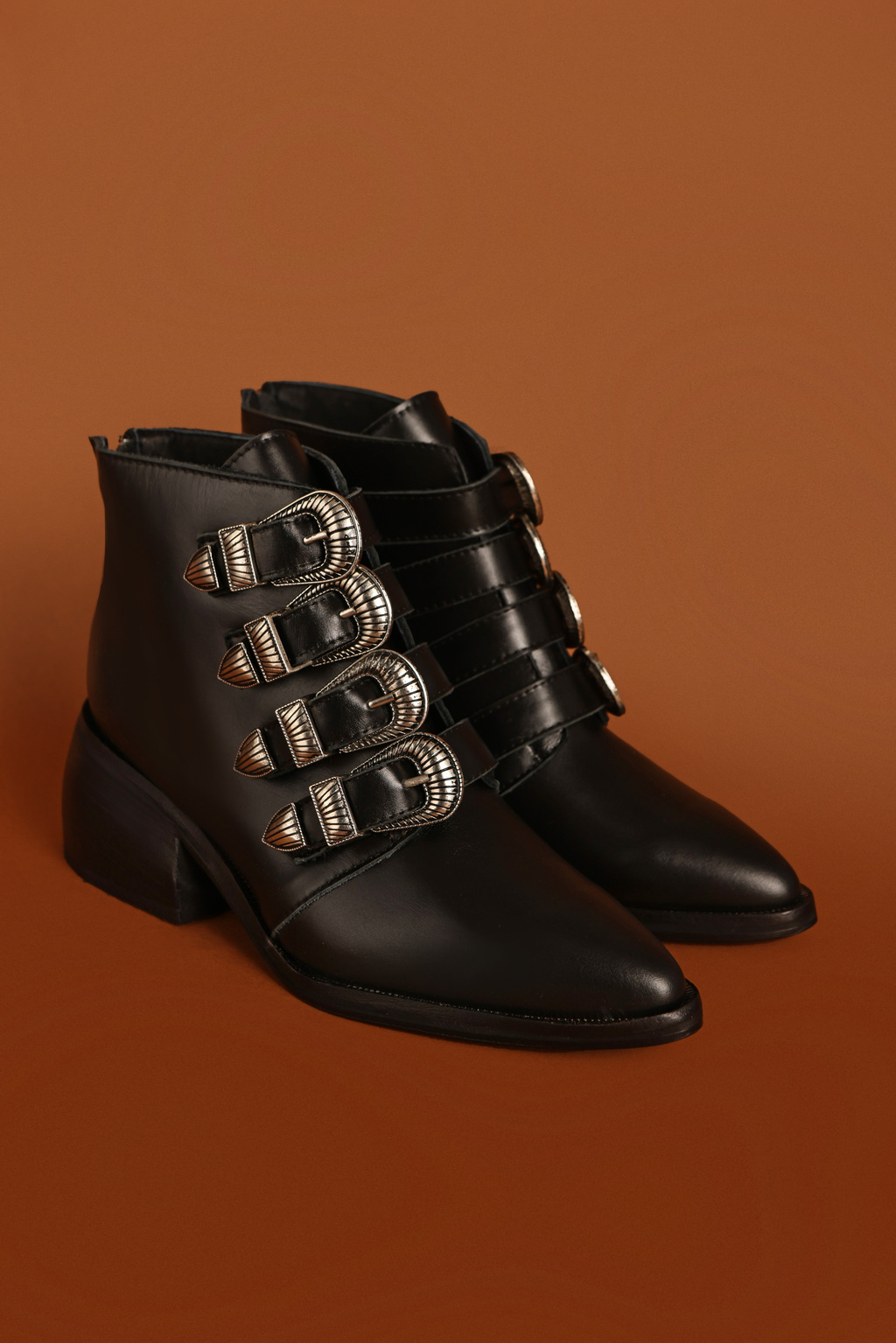 Bota fabricada en cuero negro de alta calidad, con forro interno de cuero vacuno que garantiza comodidad y durabilidad. Presenta un diseño elegante y moderno, ideal para quienes buscan estilo y confort en cada paso.